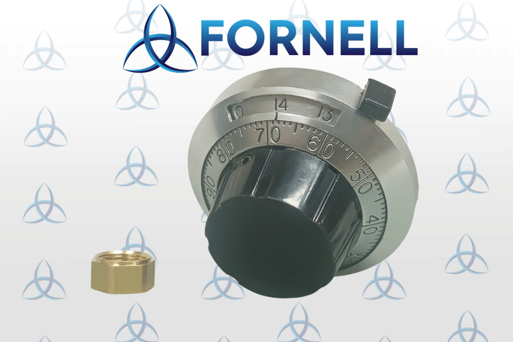 Com um diâmetro externo robusto de 46mm, ele oferece uma leitura clara e ergonômica. Seu mecanismo interno conta as voltas completas do potenciômetro, exibindo números de fácil visualização que permitem ao operador saber exatamente em qual posição o ajuste se encontra (14 voltas).