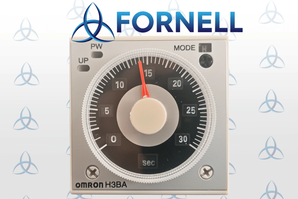 O temporizador Omron H3BA-N8H é um temporizador analógico multifuncional utilizado em automação industrial e painéis elétricos. Possui ampla faixa de tempo ajustável, variando de 1,2 segundos até 300 horas, com indicação por LEDs de status de operação e alimentação.